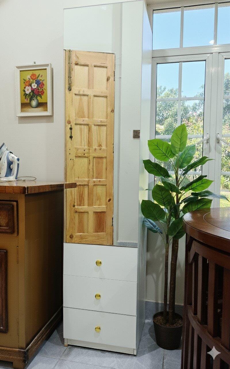 Our Aston dressing cabinet a premium quality storage cabinet, expertly crafted from laminated wood. This stylish piece features three spacious drawers for ample storage and a chic mirror-style door that adds a touch of elegance. Its compact design makes it perfect for small spaces, allowing you to effortlessly place it in any room without compromising on style or functionality. A great addition to enhance your home decor while providing practical storage solutions.